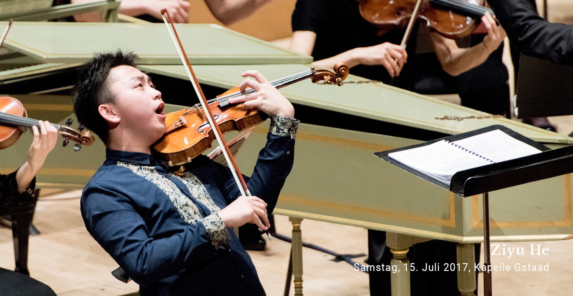 Mit seinen 16 Jahren kann der chinesische Violinist Ziyu He, Schüler von Paul Roczek (Violine) und Thomas Riebl (Viola) am Salzburger Mozarteum, bereits eine beeindruckende Anzahl von Auszeichnungen vorweisen: 2014 belegte er den 1. Platz beim Eurovision Young Musicians und gewann den 1. Preis beim Internationalen Instrumental Wettbewerb Markneukirchen; 2015 folgte der 1. Preis beim Internationalen Mozart-Wettbewerb für junge Musiker in Zhuhai. Sein erster Lehrer Xiangrong Zhang, der ihn im zarten Alter von 5 Jahren unter seine Fittiche nahm, hat deshalb allen Grund, auf ihn stolz zu sein. Und umso erwartungsvoller sind die Anhänger des Gstaad Menuhin Festivals, die das Glück hatten, ihn im vergangenen Jahr in der Kirche Saanen zu hören, wo er in dem denkwürdigen «BBB-Konzert» Bachs Violinkonzert E-Dur mit dem Gstaad Festival Chamber Orchestra interpretierte!